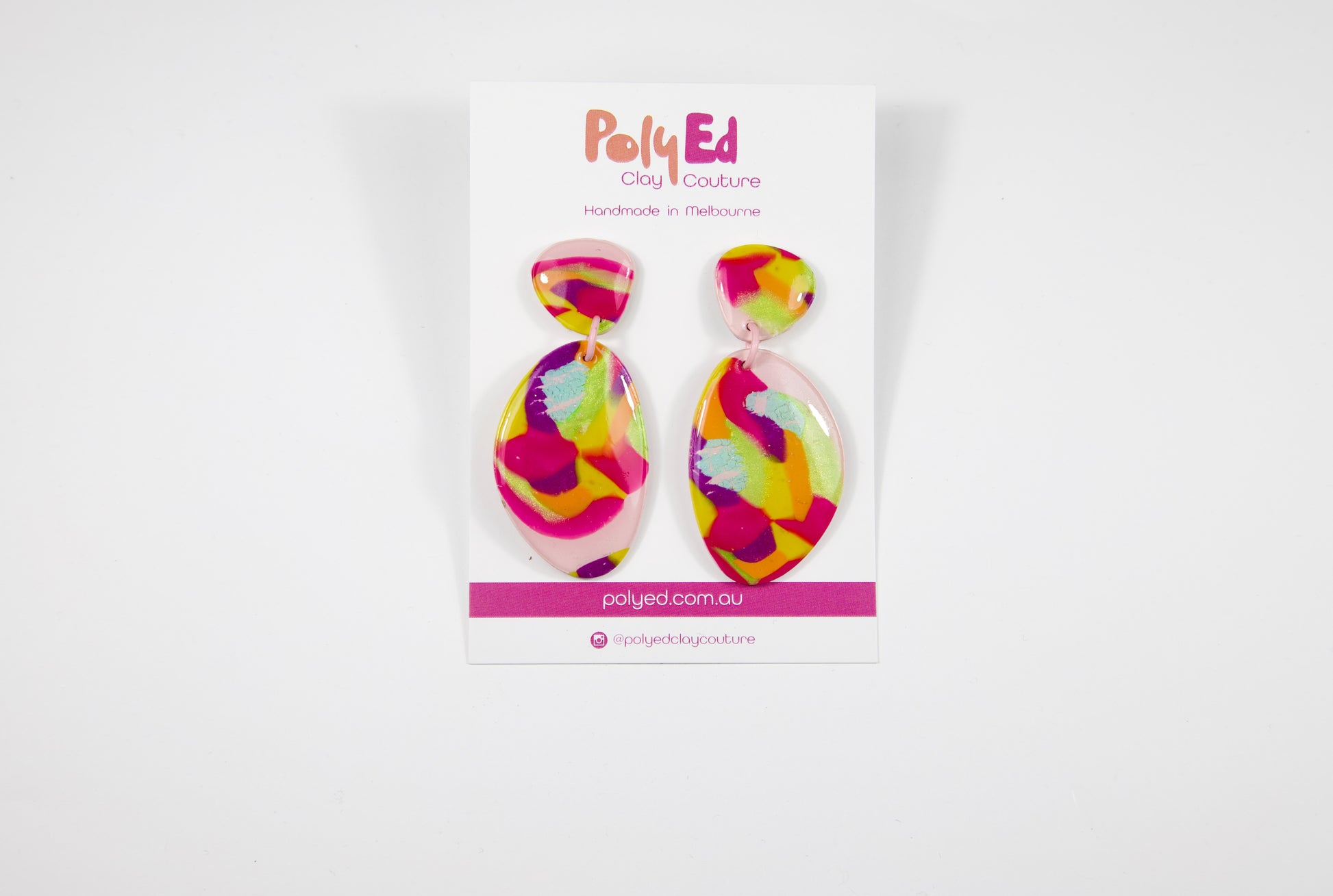 Add a stunning pop of colour to any outfit with these fabulous earrings, lovingly handmade by Jane, the founder of Poly Ed Clay Couture.