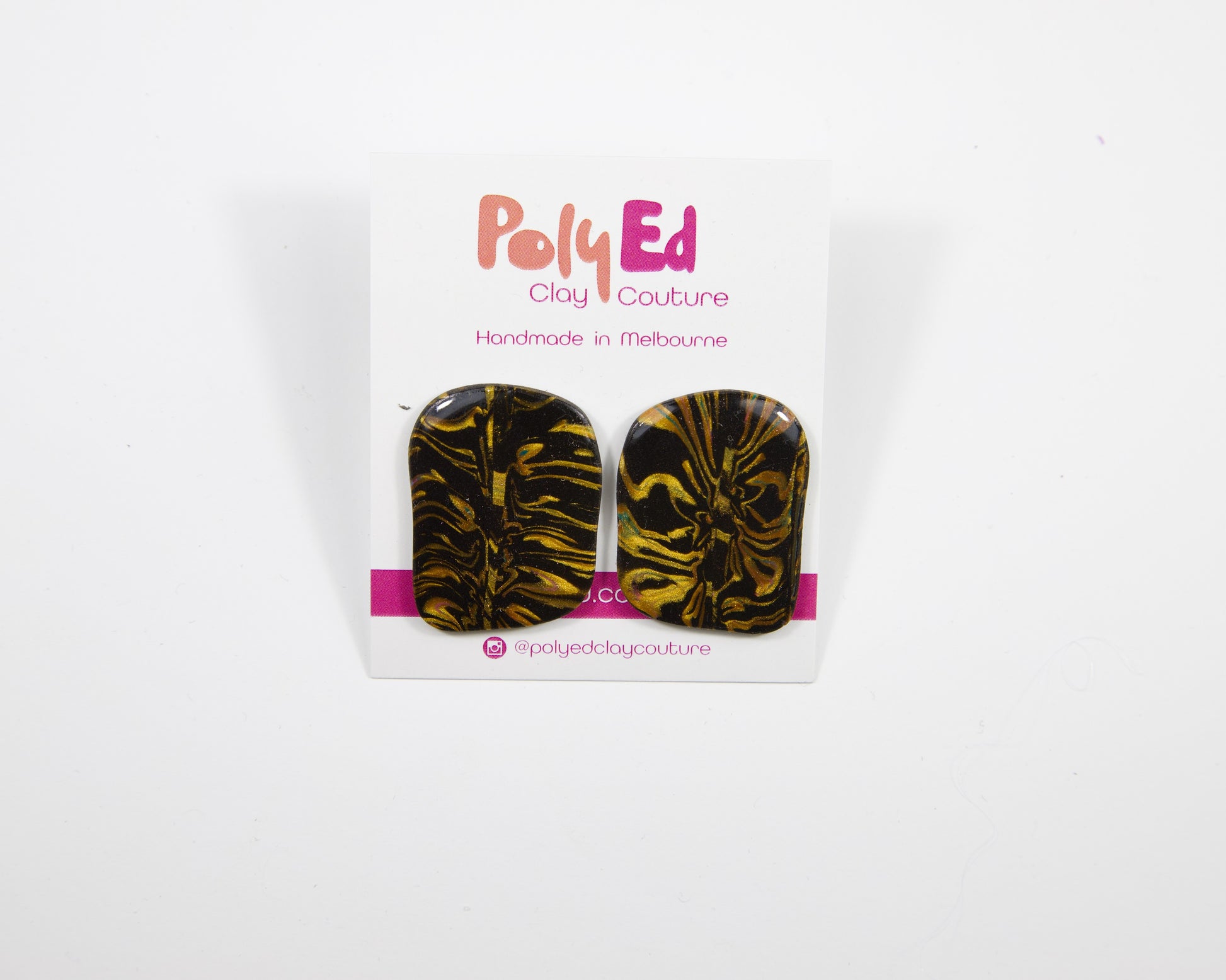Moni Studs are approximately 2cm x 3cm and are comprised of surgical stainless steel and polymer clay.