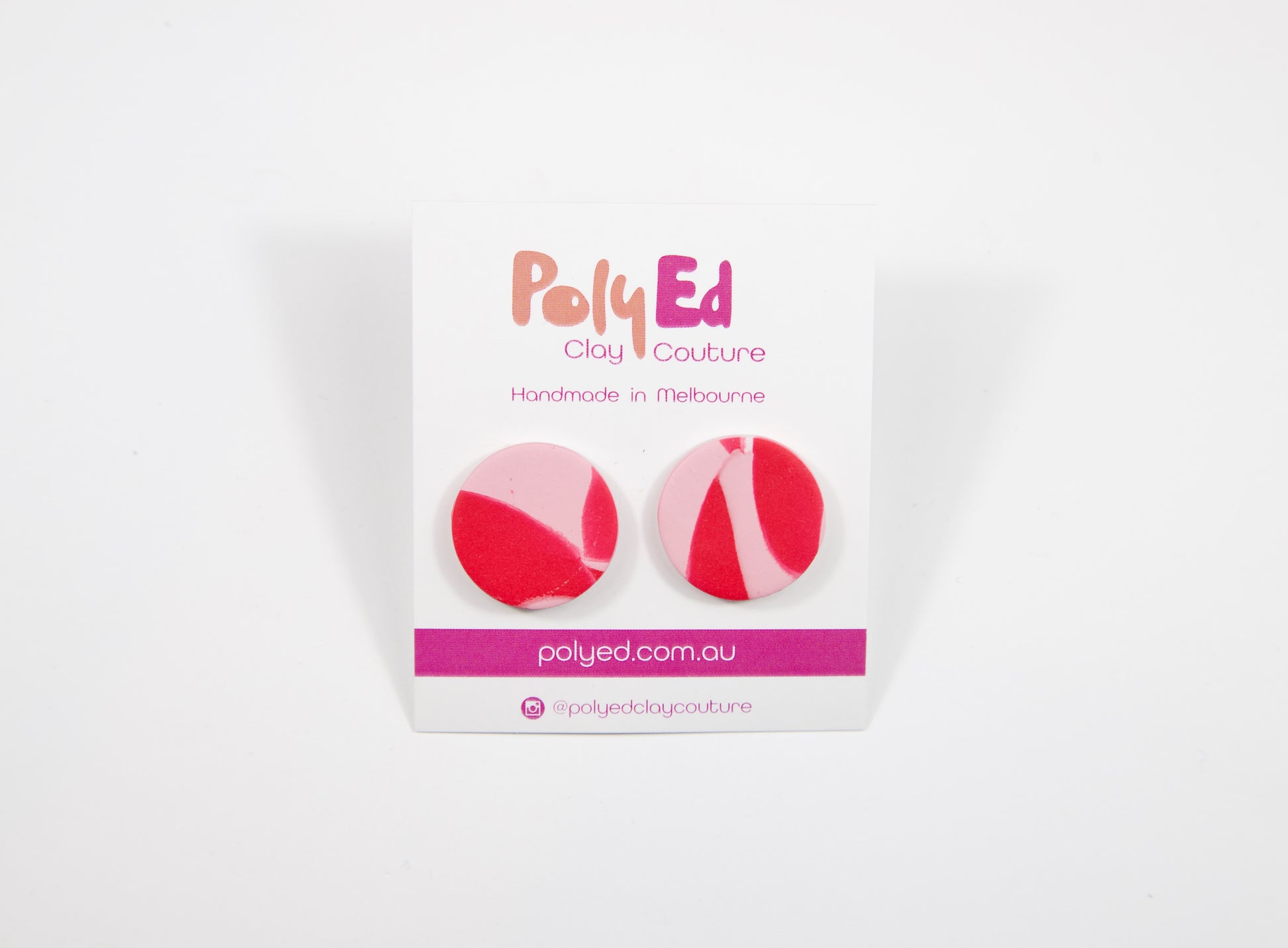 Nessa Studs are approximately 2cm in diameter and are comprised of surgical stainless steel and polymer clay.