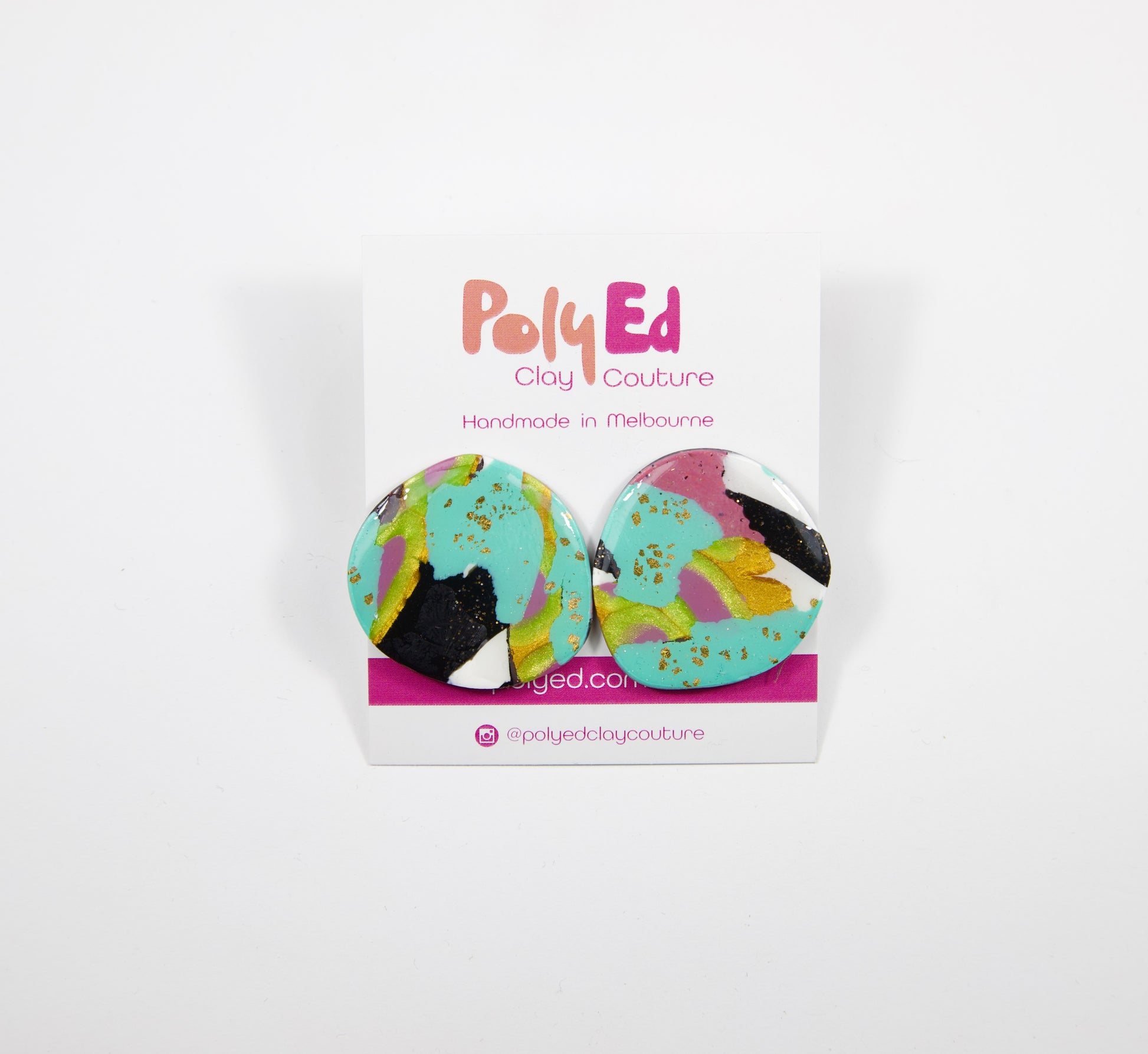 Siena Studs are approximately 3cm in diameter and are comprised of surgical stainless steel, polymer clay and coated in resin for a glossy shine.