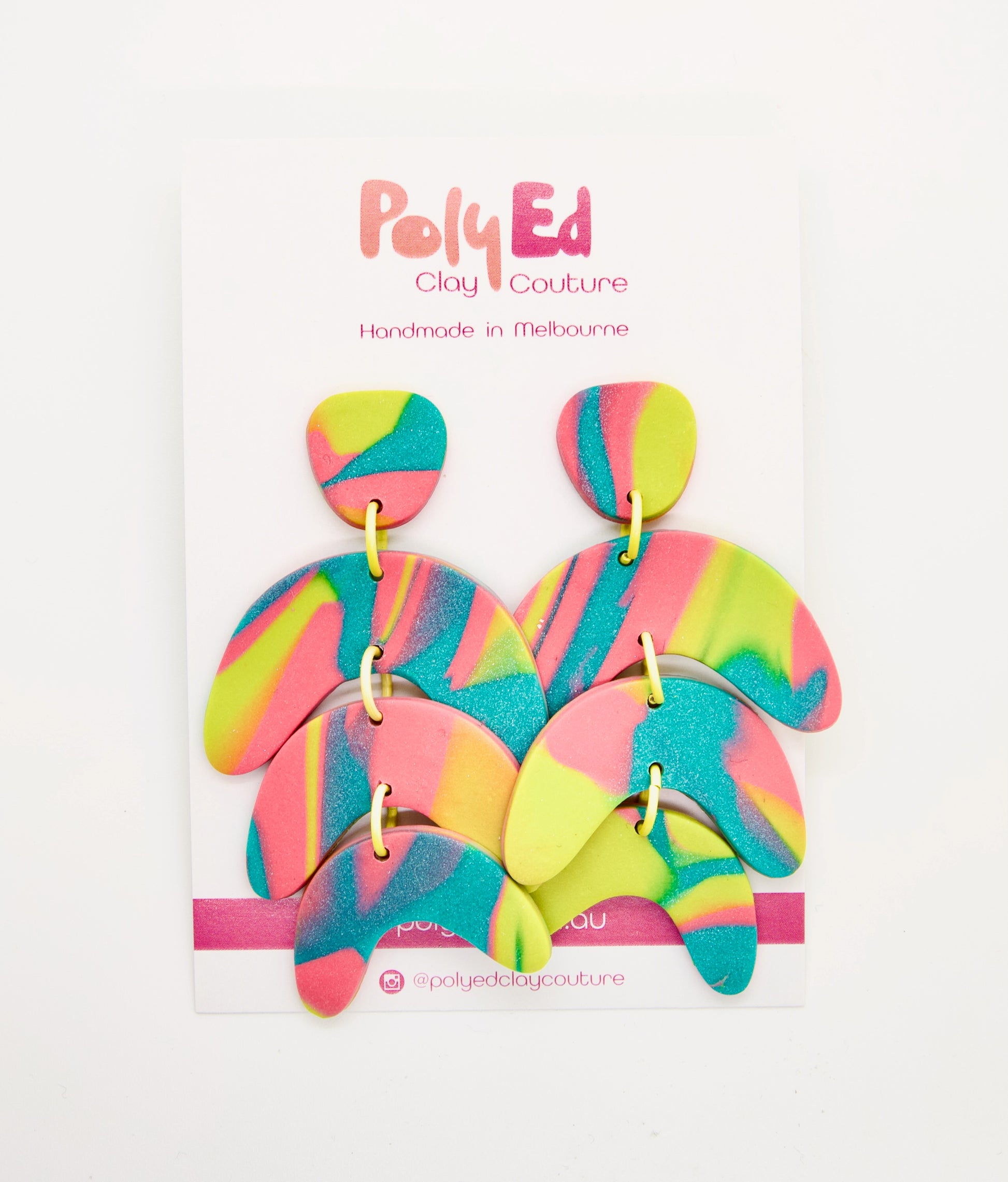 Add a stunning pop of colour to any outfit with these fabulous earrings which were lovingly handmade by Jane, the founder of Poly Ed Clay Couture.